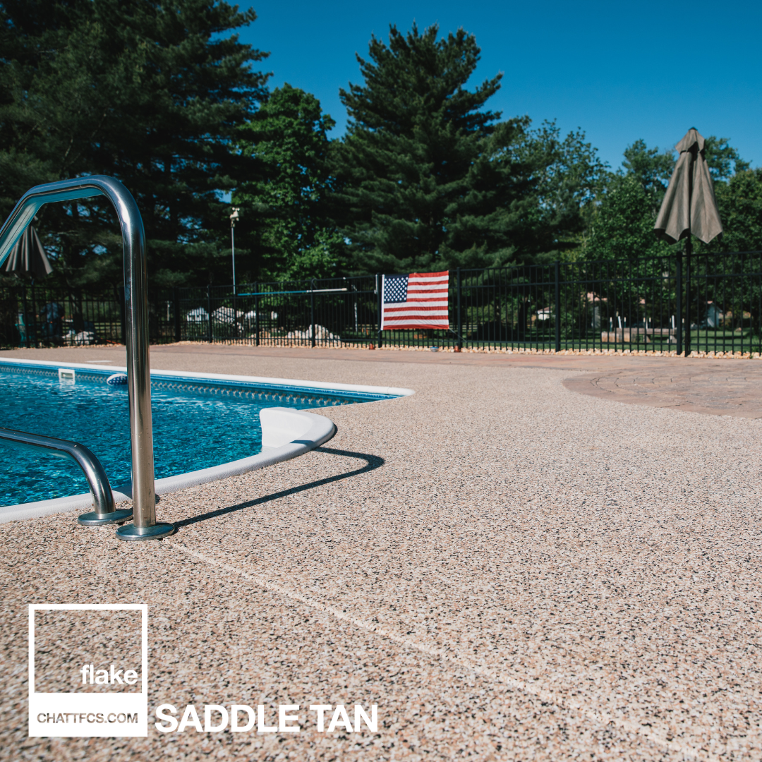 Saddletan is one of our eight flake blends that we keep stocked year round. This blend is one of Torginol’s signature collection blends and is a warm blend of beiges and creams with a hint of contrasting black flakes. We’ve added several Saddletan flake projects below to give you an idea of how this blend looks in different areas and lighting situations (these are not stock photos - they are all taken by CFC).